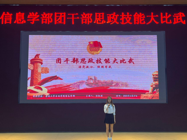 为提升团干部综合素养和业务能力,6月17日,信息学部在大活报告厅举办团干部思政技能大比武。活动特邀赵亚娟、张灵和姚佳辰老师担任评委,信息学部各年级团支书代表参赛,学生会组织部副部杜淑晴担任主持活动。