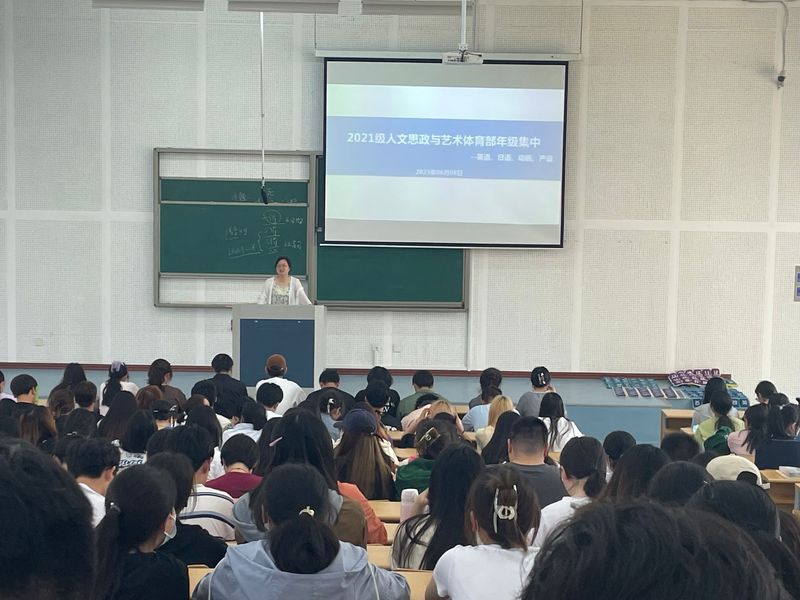 6月8日下午,人文思政与艺术体育部2021级二部在JX7-8-102开展了年级集中,会议由辅导员韩勤老师主持,英语、日语、动画、产品设计四个专业全体同学参加。