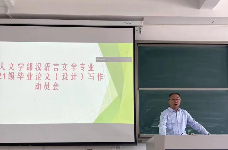 为推进本科毕业论文写作工作的高质量开展,人文学部于2024年6月18日下午在JX3-4-101教室召开了汉语言文学专业2021级毕业论文(设计)工作动员暨论文写作指导会。人文学部汉语言文学专业负责人王春云教授、李卫东老师及2021级中文专业全体同学参加了会议。