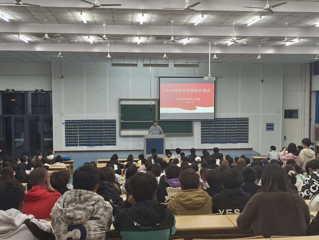 为加强2024级新生对党团知识的学习,人文学部于11月5日晚在JX7-8-110和JX7-8-102教室举办党团知识培训讲座。本次讲座邀请了学部学工办副主任韩勤老师和学部团委负责人沙舟老师作为主讲人,参会人员为人文学部2024级全体新生。