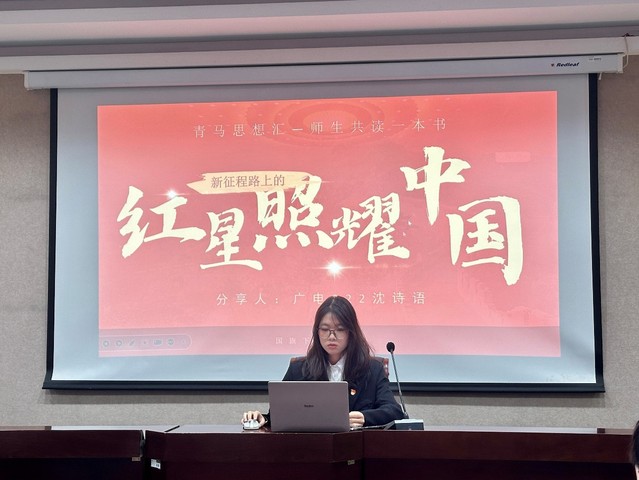 学生代表沈诗语同学上台进行了《红星照耀中国》的读书心得分享。她详细描绘了中国共产党领导下的红军在极端困难的环境下所展现出的坚韧生活与顽强战斗,以及他们坚定不移的信仰和革命精神。沈诗语同学深情讲述了中国共产党领导人的卓越智慧和非凡魅力,正是这些领导人的远见卓识与坚定信念,为中国革命事业奠定了坚实的基础。