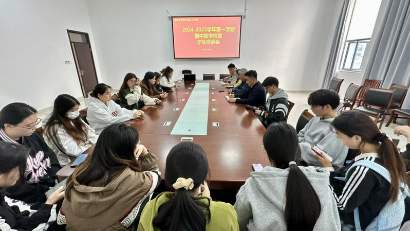 根据学院《关于进行2024-2025学年第一学期期中教学检查》的通知要求,人文学部于11月8日、11日、12日分别召开了大一至大三年级学生座谈会,学部主任康卫东、副主任左俊楠、教学督导朱明、教学秘书、年级辅导员、各班学生代表参加了会议。