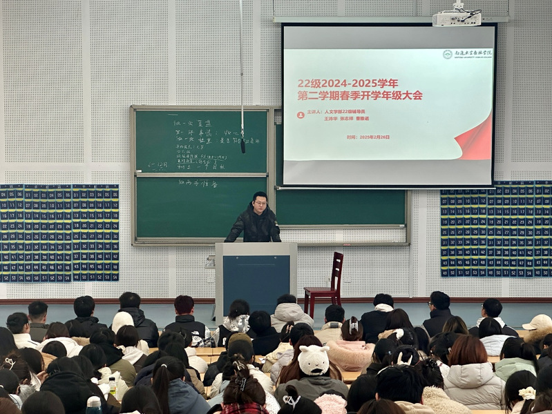 2月25日、26日,2022级人文学部新学期年级大会分别在JX7-8-110和JX-7-8-102举行。本次大会围绕新学期学业规划、校园安全防范、职业发展引导等多项关键内容展开,旨在为同学们新学期的学习与生活提供全面指引,助力大家在新的阶段稳步前行。