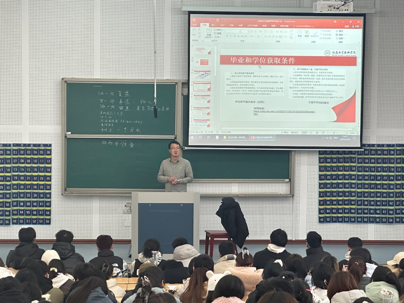 在25日举行的年级大会上,主讲人王沛华老师从新学期新目标、上学期期末考试情况分析、学位证和毕业证授予条件、各专业学位课程、个人发展规划、心理健康、反诈骗宣传、宿舍用电安全和开学初的待办工作事宜进行了讲解和剖析。他强调,要发挥大学生的主观能动性,从过去的被动学习方式改为主动学习,希望每个同学可以自主梳理上个学期的收获与经验教训,根据自己的目标制定好人生规划,为将来大四时的就业实习进行准备。