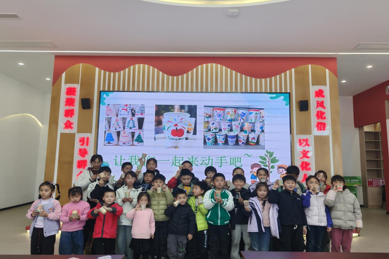 推普课堂创新采用"非遗+语言"模式,将绕口令训练与民族知识竞答巧妙结合。"彝家阿妹绣花裙,裙摆飘飘绕彩云"等原创方言童谣,通过击鼓传花游戏激发学习热情,孩子们在志愿者的指导下用指尖演绎"中华民族一家亲"的动人旋律。环保实践环节则展现绿色新理念,废旧纸杯经巧手改造,变身绘有东巴文字、侗族鼓楼等民族元素的创意笔筒,让生态意识与民族文化碰撞出创新火花。
