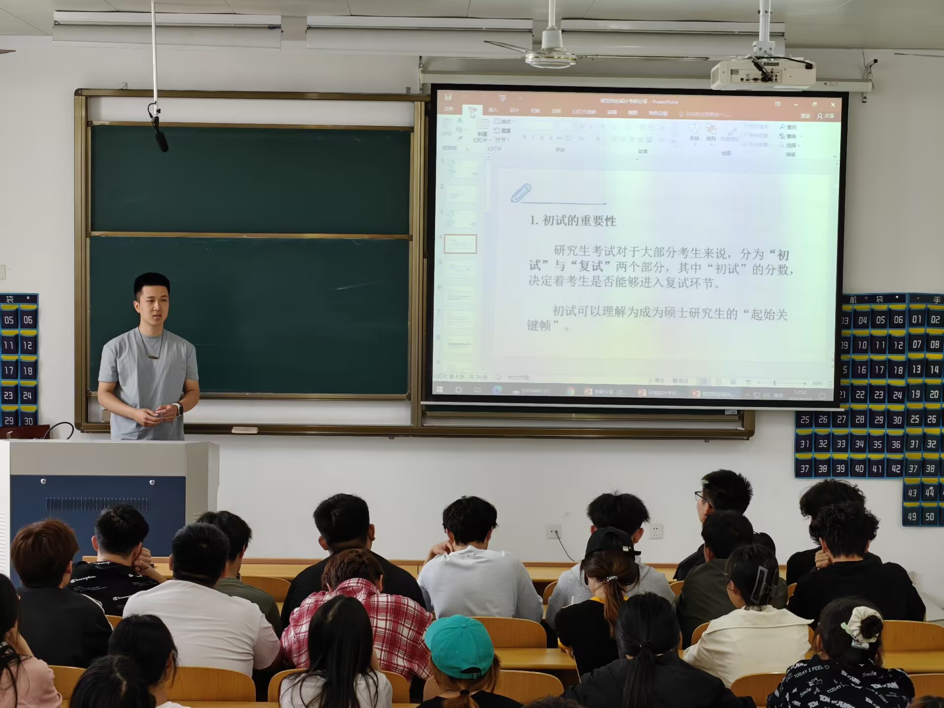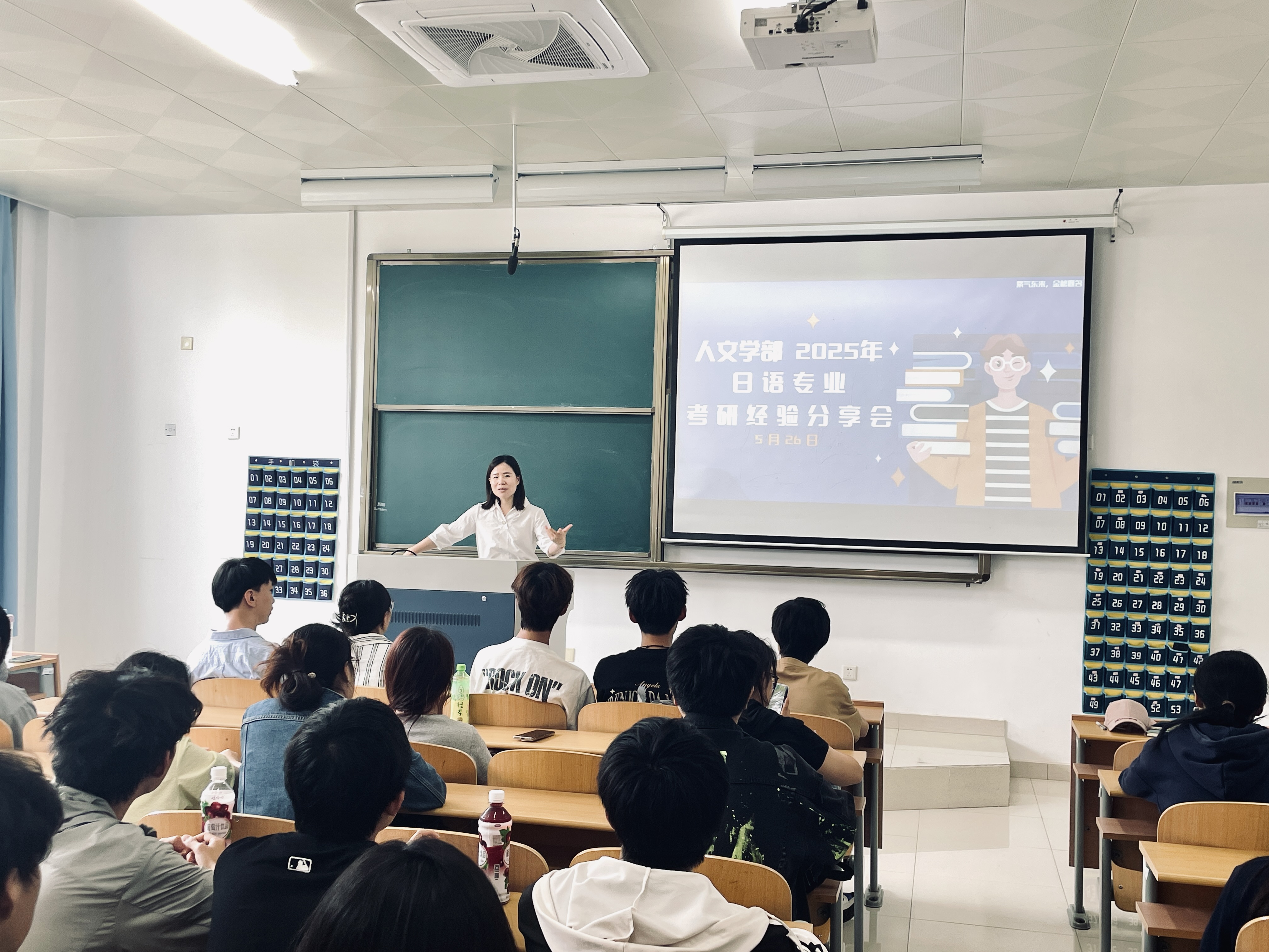 为助力人文学子科学规划升学路径,提升考研竞争力,5月21日至27日,人文学部成功举办了2025届考研经验分享会。此次分享会特邀2025届考研成绩突出的十四位优秀毕业生代表,分中文系、外语系、艺术系三个学系英语、日语、中文广电专业等四个专场,以主题分享、交流互动、座谈会等方式进行,为低年级的同学带来干货满满的经验分享。学部党总支副书记许静静、所有辅导员及三百余名大一至大三年级有志于考研的学生参加了本次活动。