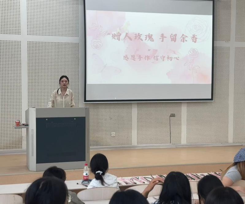 为进一步深化教育效果,活动还组织了一场温馨的手作玫瑰和石膏画活动。在活动现场,同学们领取了扭扭棒、石膏等材料,亲手制作一朵朵象征感恩与美好的玫瑰。有的同学在制作过程中,回忆起父母为自己付出的点点滴滴,将感恩之情融入每一片花瓣的折叠中;有的同学则想到老师的辛勤教诲,精心挑选颜色,将感激之情融入到每一笔石膏的填色中。巧手传情,感恩于心,小小的手工作品承载着同学们对于帮助过自己的家人朋友以及社会的感恩与祝福。